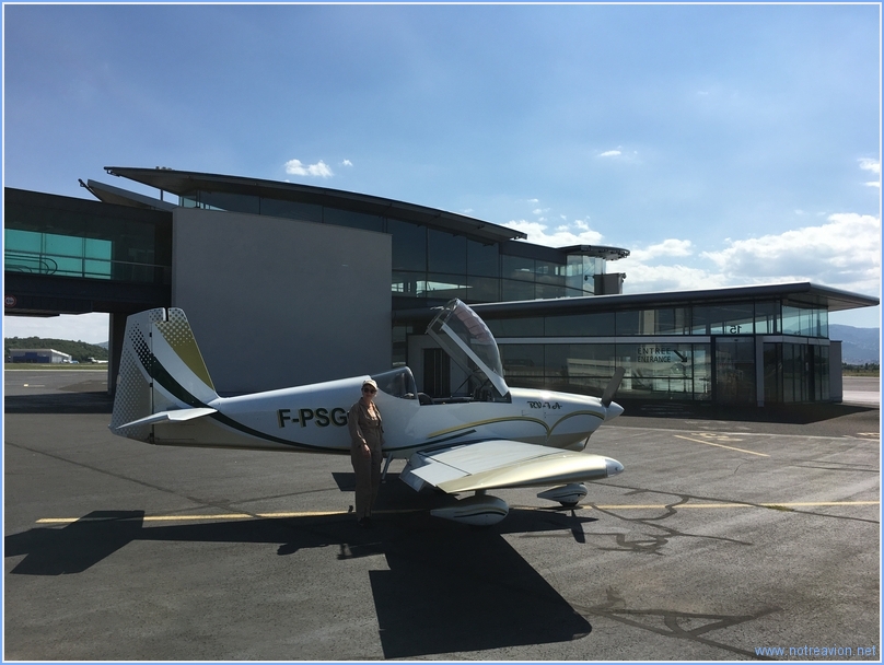Puis c'est déjà le moment du retour, nous retrouvons le F-PSGA sagement garé à une place d'avion de ligne au contact de l'aérogare. Nous sommes passés par le terminal affaire pour le handling (une cinquantaine d'euros pour le total des taxes, dont la moitié pour la navette pas question de  traverser le parking à pied).