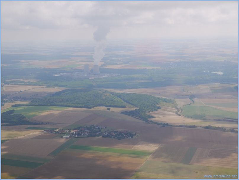 Nous passons travers la centrale de Nogent-sur-Seine qui semble fabriquer la couche nuageuse présente en région parisienne mais qui va bientôt se dissiper.