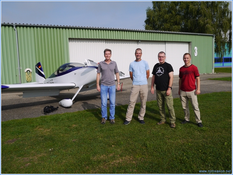 En plus de nos trois avions, nous attendons deux RV-8 allemands pilotés par Herman et Moritz, cela permettra au moins expérimentés de ne pas voler à chaque tour. Il n’est pas possible d’augmenter le nombre d’avions dans la patrouille tant que les moins expérimentés ne peuvent voler seul en position de numéro deux.