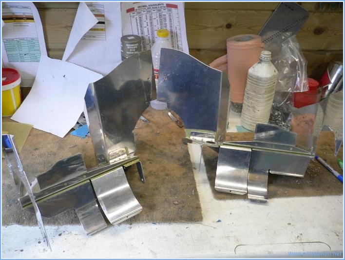 I spent a good part of the afternoon, sanding, priming and riveting the forward and side baffles. Some rivets where interesting to set, and I used a few pop rivets in places I feared I would damage the parts. The picture shows the two finished parts. With the parts bolted to the engine, came the time to cut of the height to be able to close the upper cowl. The picture shows there will be quite a lot of material to cut off. I progressed very slowly and still a couple 1/8" to cut off beafore tackling the final cut. This will be done next time. Working time on this subpart Today : 4h (Total : 49h) |