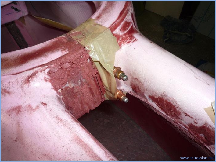 The epoxy layer is not completely cured, so it's not possible to work on the whole surface of the cowl. But the inlet area needs to be built up on one or the other cowl to get a good fit. I'm using some thickened epoxy. The initial pass is quite rough to get the correct height, some more work will be needed to get a nice finish. This is the outside of the inlet. And that's the inside. Working time on this subpart Today : 1h (Total : 106h) |