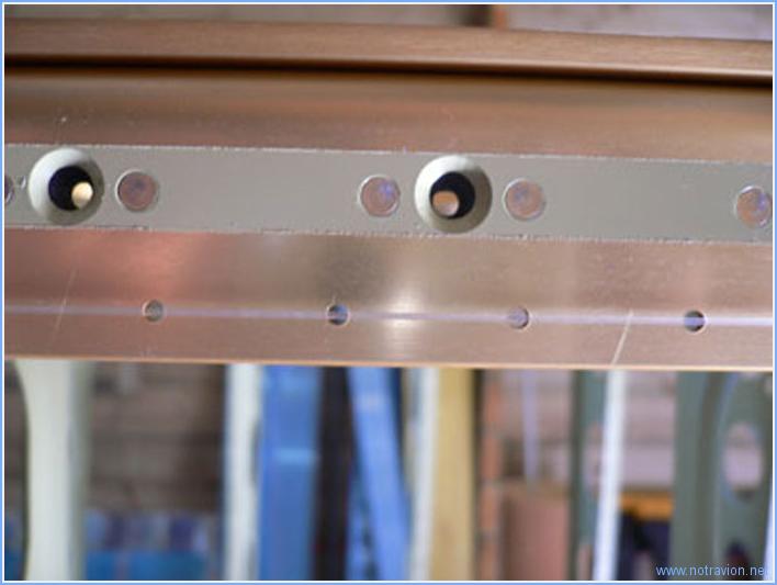 Left wing assembly. It tool less time than yesterday. First because it's easier if you use the right rivet length, yestarday I made some mistake reading the rivet layout (despite checking a few times). Then I had no rivet to drill out from the main spar. Then I riveted the rears spar. I changed the rivet head position, putting the head on the rib flange instead of the spar. It's the way Van's tells you to do it, it prevents the small distorsion f the flange I sometimes got yesterday, but it's less nice and it makes drilling out a bad rivet a real pain. Then I bucked again two or three rivets on the right wing, and put both wings on the stand. I still have to square everything. To finish I had to put one of the leading edges on the spar. Working time on this subpart Today : 6h (Total : 17h) |