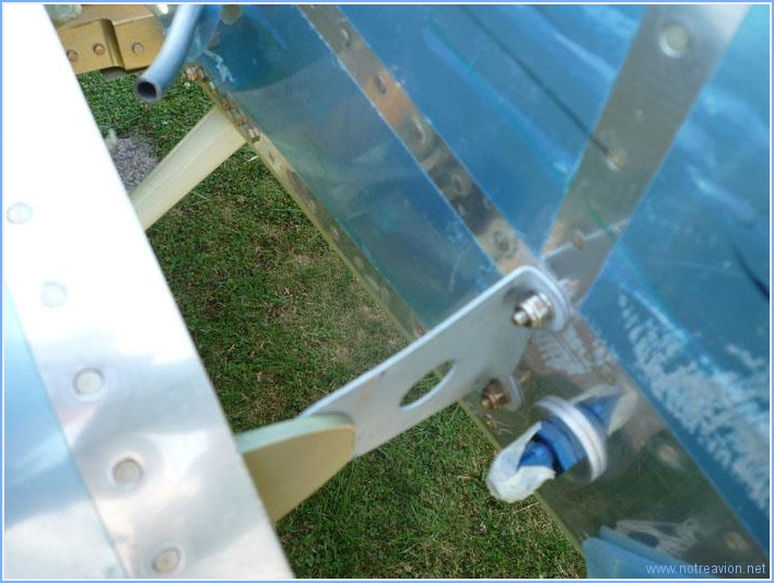 I begin by enlraging the flaps pushrod hole. This is the result after some iterations, extensions and retrations of the flaps. The flaps is rubbing aginst the fuselage, so off come a few 1/16". In the retracted position it touches the step welding, so I file the welding. For the opposite pushrod, things are easier. Just make a template, makes some marks to get the correct position (the crosses are over rivets), turn the paper and you are done. Then I mad a conservative cut and after two samll adjustments I'm done in a qurter the time. The flaps fully deployed. The the ailerons are installed. During wing construction, the flaps the ailerons and the wingtips were perfectly aligned. I'll use this to rig the ailerons. At first the ailerons are slightly misaligned. Once the ailerons, the flaps and the tips aligned, I tweak the pushrods. On the left all looks good. On the right, the flaps is slightly lower that the fuselage that it's supposed to hug. I leave it that way as the installtion is not definitive and there are some minor plays to take out of the system. I'll also check tomorrow that my flap is straight. Working time on this subpart Today : 6h (Total : 47h) |