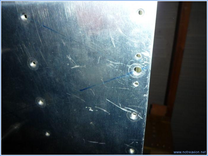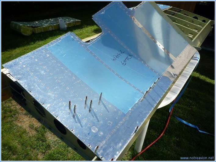 Dans les semaines à venir il faudra riveter les intrados des ailes. Cette opération se fera dans le jardin par beau temps. Avant de commencer, je dois sortir les ailes de leur sarcophage de stockage. Puis je marque les peaux avec les références des rivets à utiliser pour éviter d'avoir à consulter le plan pendant le rivetage. Je commence également à faire quelques perçages pour l'installation des écrous prisonniers de fixation du carénage d'aile. Toutes les positions ne sont pas accessibles avec les ailes dans le support, il faudra sortir les ailes pour terminer. Temps de travail sur le sous-ensemble Aujourd'hui : 2h (Total : 55h) |
