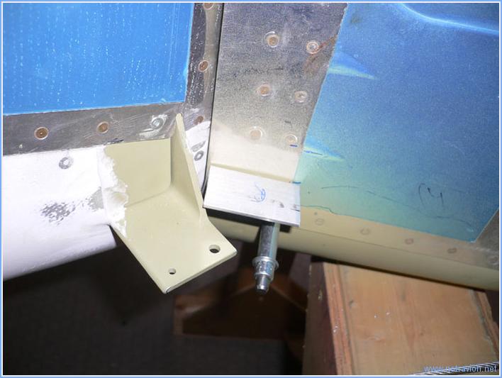 Aujourd'hui, suite de l'installation de l'empennage. Tout d'abord il faut terminer les perçages laissés en plan hier. Ici, la pièce de jonction entre le longeron avant du plan fixe horizontal et le longeron avant du plan fixe vertical. La forme un peu biscornue de la pièce permet de décaler l'avant du plan fixe vertical vers la gauche, et cela pour contrecarrer le souffle de l'hélice. Après avoir réinstallé le plan fixe horizontal, j'ai percé son longeron arrière et le cadre arrière du fuselage pour la mise en place de quatres boulons. Voici une photo avec toutes les parties en place. Un carénage rendra tout cela plus aérodynamique. La prochaine opération consiste à mettre en place les butées de la gouverne de direction. Les dimensions sur les plans sont connues pour être assez imprécise. Je fabrique les cornières sans faire toutes les découpes. Il faudra couper la cornière brute, pour que la pièce verte vienne buter dessus en fin de course de la direction. Temps de travail sur le sous-ensemble Aujourd'hui : 3h (Total : 60h) |