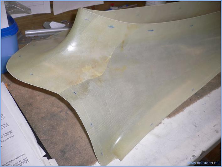 J'ai trouvé les pièces qui servent à terminer le carénage de l'empennage. Leur installation commence en enlevant 7 rivets de chaque coté. La pièce est ensuite ajustée, elle n'est pas complètement terminée, il y a un joint qui vient la terminer. Voici un tout petit bout de joint installé. La pièce sera ajustée plus tard après la mise en place des ailes, car il faudra peut-être modifier légèrement le calage du plan fixe horizontal ensuite. Le carénage en fibre de verre doit être découpé, il sort du moule avec de très légères marques. Je les mises un peu plus en évidence et ferait le découpage la prochaine fois Temps de travail sur le sous-ensemble Aujourd'hui : 2h (Total : 65h) |