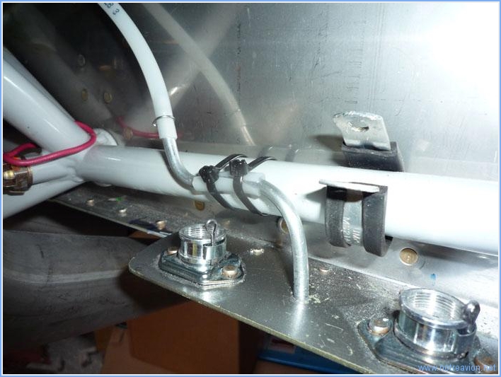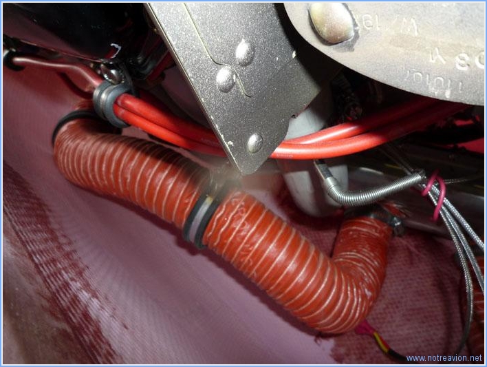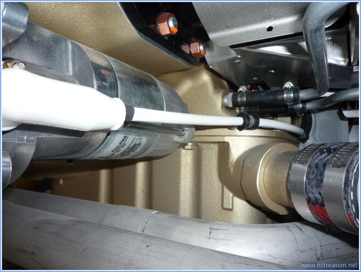 Avant de m'occuper de fixer correctement un certain nombres d'éléments sous le capot, je dois installer provisoirement quelques camlocks pour pouvoir installer le capot inférieur et vérifier les jeux. Voici un de camlock installé, visuellement c'est parfait. Puis j'installe la conduite de ventilation du silencieux gauche. la première tentative n'est pas parfaite car la gaine touche le capot (en arrière-plan sur la photo). Après quelques ajustement, le résultat est correct. Je marque les différents éléments en vue de l'installation définitive ultérieure. Puis je fixe le trop plein de la pompe carburant mécanique. Un tuyau souple est fixé en sortie de pompe, puis raccordé à un petit tuyau en aluminium pour évacuation sous le capot. Enfin je fixe la gaine d'évacuation d'air du silencieux gauche. La mise en place des deux brides et de l'ensemble boulon-rondelle(écrou ne va pas sans mal, il faudrait au moins six mains. l'astuce consiste à maintenir la bride fermée avec un peu de fil à freiner, encore visible sur la photo. Temps de travail sur le sous-ensemble Aujourd'hui : 3h (Total : 145h) |