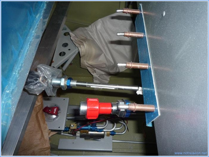 Suite de l'installation des éléments autour du moteur avec la mise en place des commandes de gaz et de mixture. Pas de problème particulier pour le coté manette de gaz sur le bloc d'injection. Et pas de problème non plus du coté mixture. Mais gros problème du coté cabine, puisque la longueur des câbles ne permet pas d'atteindre la tableau de bord ( à gauche sur la photo). Je vais faire quelques recherches. Temps de travail sur le sous-ensemble Aujourd'hui : 1h (Total : 136h) |