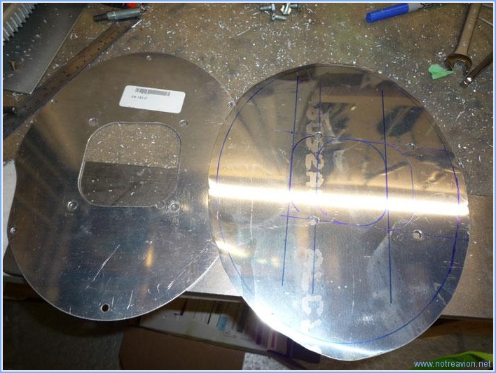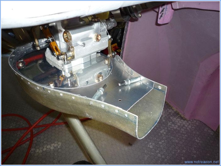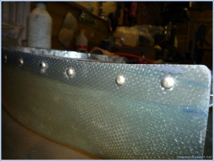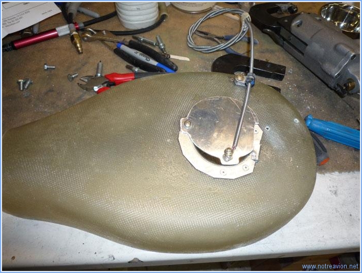 La suite de la mise en place de la boite du filtre à air est toujours pleine de surprises et m'a occupé pendant toute la journée. Je commence par ce que j'aurai dà» faire hier avant de refabriquer la plaque de fixation supérieure, c'est à dire fabriquer un gabarit. Le voici à droite avec la pièce originale à gauche. On voit bien que les quatre perçages pour les boulons de fixations sont décalés vers le bord droit. Mais une fois l'ensemble monté sur l'avion, il y a un problème. Comme les boulons ne sont plus au centre de la boite, ils ne sont plus au centre du filtre à air. Et le haut du filtre interfère avec les deux boulons de fixation gauches. Certains constructeurs (avec des configurations différentes de la mienne) doivent modifier le haut du filtre à cause d'une interférence avec le carburateur, je vais donc appliquer la technique décrite : découpe du haut du filtre et refaire l'étanchéité au joint à réservoir. Avant de me lancer dans cette opération, je vérifie que tout est correctement en place avec des jeux corrects pour les parties mobiles. Voici la commande de richesse avec sa rotule de commande, pas de problème à ce niveau, il faudra toutefois revérifier le jeu entre la rotule et le capot une fois tout installé définitivement. Puis je m'occupe de l'avant de la boite.Elle doit être raccourcie pour permettre le démontage du capot inférieur. La plaque est délà coupée, il reste à couper la partie en composite. Puis vient le moment de faire la découpe du haut du filtre à air. La photo montre la découpe pour les deux boulons et enfin uen bonne surprise, les découpes n'entament pas l'intégrité du joint et donc il n'y aura pas à le refaire. Puis je m'occupe de la mise en place de la prise d'air de secours sur le bas de la boite. Cette prise d'air est toujours fermée mais peut être ouverte en vol en cas de blocage (neige, glace, corps étranger) de la prise principale. Le moteur serait alors alimenté en air non filtré en provenance du compartiment moteur. Il n'est pas prévu de refermer cette prise en vol, la porte ne fonctionne que dans le sens ouverture. Et enfin j'ai riveté la plaque inférieure sur la boite en composite. Les rivets utilisés sont des petits rivets à tête bombée dont c'est la première application dans la construction. Maintenant il reste à refaire la plaque de fixation supérieure en copiant le gabarit et à réaliser la jonction entre l'écope du capot et l'avant de la boite. Temps de travail sur le sous-ensemble Aujourd'hui : 7h (Total : 109h) |
