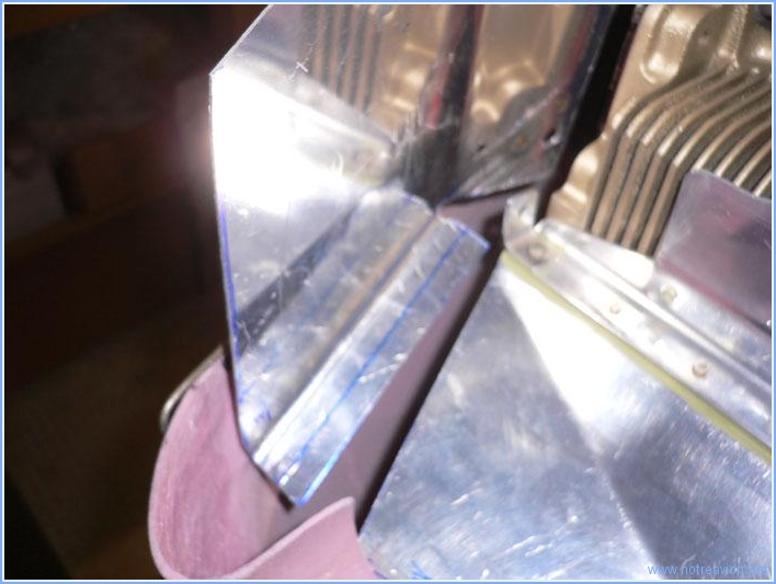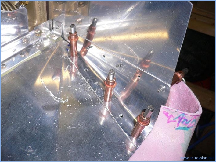 Cela commence par le pliage de la partie inférieure du coté vertical qui sera riveté avec la rampe avant. Pas de trop de problème sauf pour la photo qui est floue. Puis il s'agit de fabriquer deux petits congés de raccordement coniques pour les coins extérieurs des ouà¯es. Je commence par fabriquer un gabarit en papier épais. Et voici le résultat après pratiquement une heure de travail, le gabarit n'était pas parfait et obtenir la bonne courbure n'est pas très évident. Voici la pièce pour l'autre ouà¯e, fabriquée un peu plus rapidement. Puis vient la mise en place des cloisons verticales avant et des petites équerres de fixation. La photo montre le problème que j'ai alors découvert. On devine un écart assez important entre la cloison et le capot (en avant de la petite équerre). La remise en place de la cloison a nécessité la fabrication de nouvelles équerres et l'ajout de quelques rivets supplémentaires. Temps de travail sur le sous-ensemble Aujourd'hui : 5h (Total : 43h) |