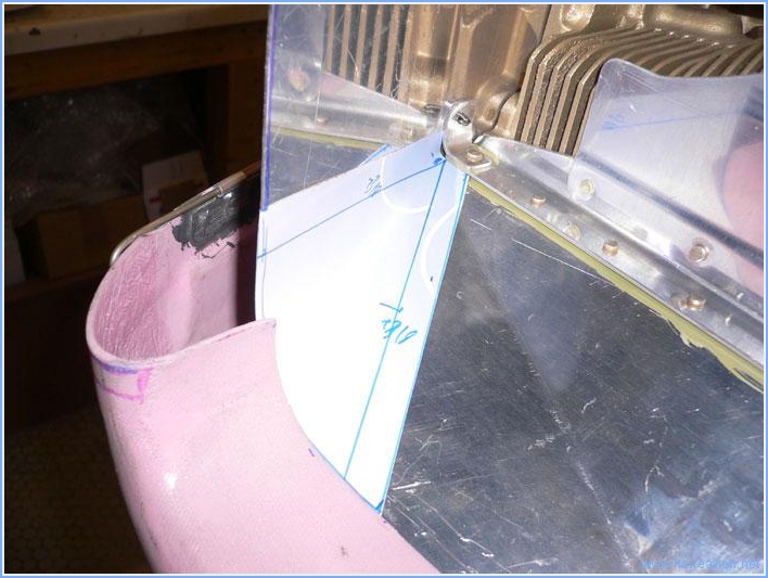 La journée est consacrée à la mise en place des rampes d'entrée au niveau des ouà¯es. Les parois livrées sont beaucoup trop longues et n'ont pas la bonne forme pour permettre la mise en place du capot inférieur. Cela commence donc par une coupe au jugé pour pouvoir y voir un peu plus clair. Voici une vue depuis l'arrière qui montre que la rampe ne tangente l'ouà®e que vers le centre, il va falloir faire un pli pour arranger cela. Sur cette photo on devine le pli en diagonale (c'est plus visible sur la photo suivante) qui permet de remonter le coin extérieur de la rampe. Il faut aussi découper la paroi verticale et la plier pour qu'elle vienne tangenter le coin extérieur de l'ouà¯e. Voici le coté gauche. Il a fallu beaucoup de montages et démontages des rampes et du capot pour arriver à ce point. L'idée étant de progresser par petites étapes pour ne pas se retrouver avec des pièces trop courtes. Ensuite il a fallu fabriquer ce petits supports pour la rampe gauche. Après peinture des parties cachées, les rampes ont été rivetées et reinstallées. La prochaine opération consistera à solidariser les parties verticales avec ces rampes. Temps de travail sur le sous-ensemble Aujourd'hui : 5h (Total : 38h) |