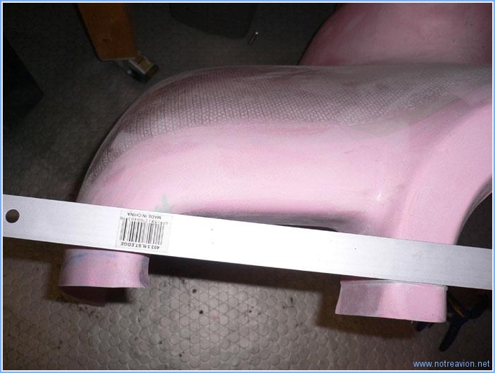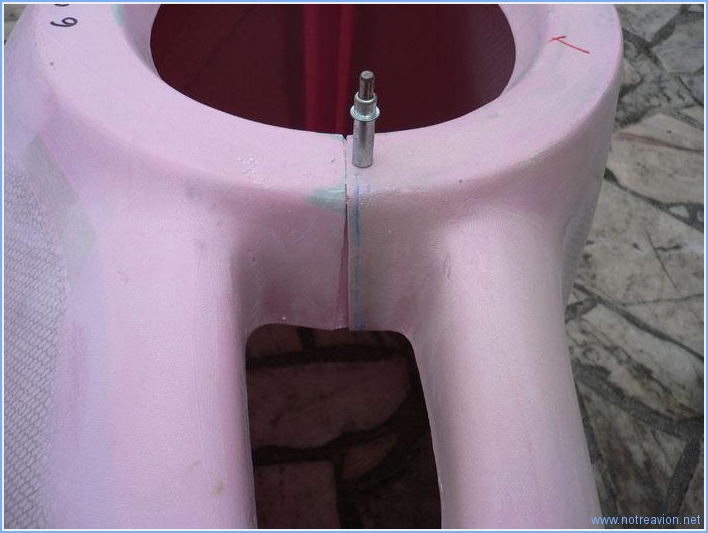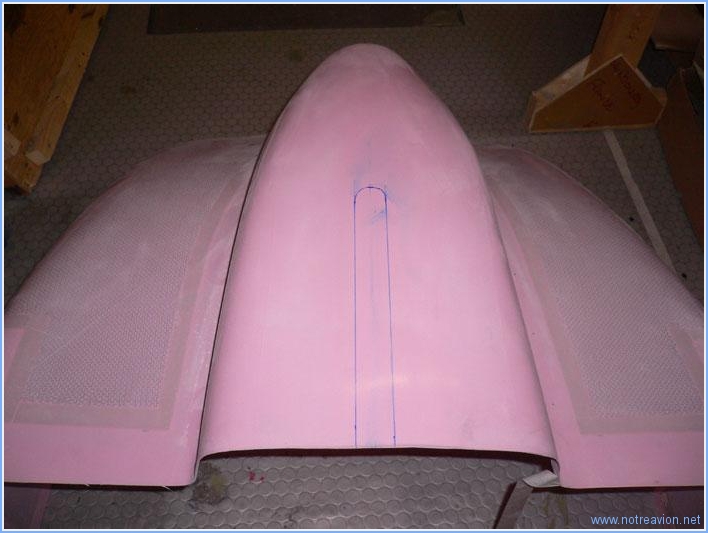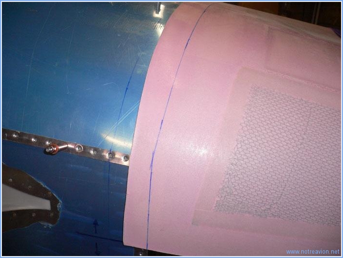 Une activité non bruyante pour ce dimanche matin : le traçage des différentes découpes sur les capots moteur. Tout d'abord, la découpe pour la jambe de train avant sur le capot inférieur. Puis le traçage d'une ligne 50mm en arrière du bord avant des tôles sur le fuselage avec lesquelles les capots devront s'aligner. Cette ligne servira à marquer la ligne de coupe sur les capots. J'ai également réinstallé les supports des camlocks, pour marquer les positions des perçages. Les supports supérieurs des camlocks doivent être découpés pour pouvoir être ajustés plus facilement à la courbure du capot. Voici un des supports avec les coupes marquées. Puis j'installe le capot supérieur. La hauteur est ajustée à l'aide d'une cale posée sur le moteur,. Le capot est positionné très légèrement (3mm) en dessous du support arrière du cône d'hélice pour prendre en compte un possible affaissement du moteur. L'écart entre le support arrière du cône d'hélice et le capot est maintenu à l'aide de la cale en bois pour être d'environ 5mm. La ligne de coupe est ensuite tracée en reportant sur le capot à 50mm la ligne tracée précédemment sur le fuselage. Lors de la coupe, je vais rester un peu en deçà de cette ligne pour être sà»r de ne pas être trop court. L'opération suivant consiste à essayer d'assembler les deux moitiés de capot pour que l'ouverture à l'avant soit bien circulaire. Malgré de nombreux essais, je ne suis pas arrivé à un résultat concluant. Les informations de la gamme de montage sont assez vagues et celle sur Internet contradictoires. Je vais faire quelques recherches supplémentaires pour voir comment appréhender cette partie. Voici une image des deux demi-capots avec le support arrière du cône d'hélice. Pas très circulaire tout cela!!!! Temps de travail sur le sous-ensemble Aujourd'hui : 3h (Total : 9h) |