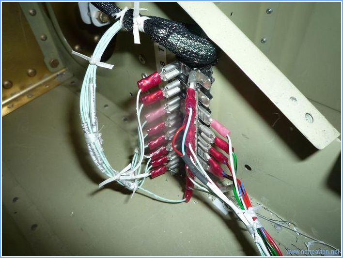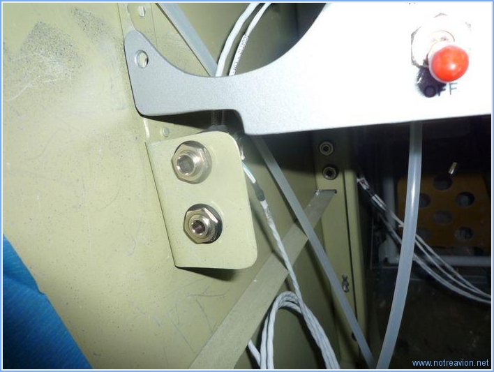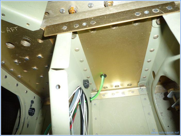 Le but était de mettre au propre les pieds de manche, pour cela il fallait commencer par terminer de faire passer tous les fils et tuyaux par le cadre principal. Il y a notamment les tuyaux de pression de l'indicateur d'incidence. Il a fallu percer un passage supplémentaire pour le passage. Ce perçage, bien que non prévu par Vans, est fait par de nombreux constructeurs en des endroits divers sur le cadre. J'ai choisi la deuxième baie, assez loin de tout autre perçage et structure. Il y a également deux câbles à installer qui relient la prise du micro à l'alternat du manche. J'ai donc installé provisoirement les prises micro et écouteurs. Et voici tous les câbles en place et sécurisés sur le domino. Temps de travail sur le sous-ensemble Aujourd'hui : 2h (Total : 188h) |