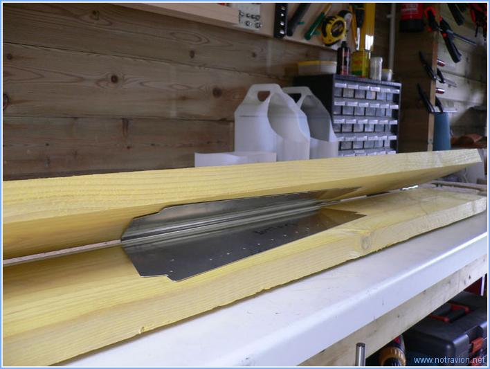 Assemblage de la partie gauche de la profondeur. Cette partie est un peu plus complexe car c'est sur cette ensemble qu'est fixé le trim de profondeur. La profondeur est munie de cornes débordantes qui permettent entre autre d'équilibrer statiquement la gouverne. Cet équilibrage se fait à l'aide de blocs de plomb. Ces derniers doivent être adaptés avant perçage, après plusieurs montages et démontages, j'ai réussi à en monter un à l'envers avant de le percer, naturellement les trous ne sont pas bien positionnés. On verra demain comment résoudre ce problème. En haut c'est tout bon, en bas c'est raté!!!! Temps de travail sur le sous-ensemble Aujourd'hui : 4h (Total : 20h) |