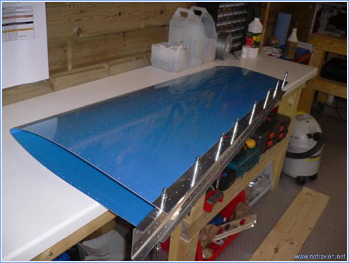 Aujourd'hui, c'est le premier jour de la construction de notre avion. Cela commence par la préparation du longeron arrière du plan fixe horizontal. Tout d'abord j'ai préparé les deux peaux en retirant le plastique bleu de protection, puis je l'ai fixé provisoirement au demi-longeron avec des pinces à tôle communément appelées cleco. Ensuite j'ai percé tous les trous de fixations au bon diamètre. Le longeron est ensuite ébavuré et les trous de fixation sont embrêvés à la riveteuse pneumatique. Ensuite j'ai préparé les deux renforts et assemblé le total à l'aide des clécos couleur cuivre. Pour finir, j'ai percé les trous de fixation des renforts sur le longeron. Prochaine session mardi, mon employeur a besoin de moi ce week-end Temps de travail sur le sous-ensemble Aujourd'hui : 4h (Total : 4h) |
