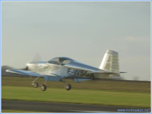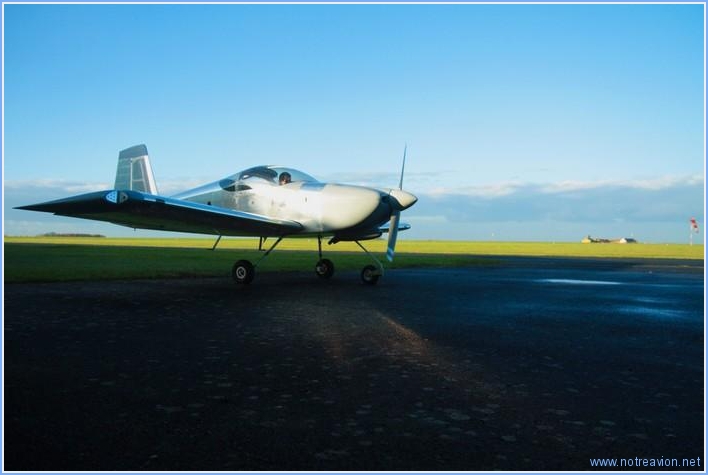 Le décollage a été sans souci. Je suis monté à 3000ft par un large virage à droite. J'ai fais un premier bilan des caractéristiques de vol, l'avion vole droit, il faudra revoir un peu l'utilisation de la direction. J'ai vérifié l'indicateur de vitesse en faisant la comparaison avec le GPS. J'ai ensuite exploré le vol lent. Tout d'abord avec un tiers de volet jusqu"à 75 noeuds, puis avec tous les volets jusqu'à 65 noeuds. L'accélération plein gaz m'a permis d'atteindre 140kts. Je suis ensuite retourné au terrain par vent arrière main gauche, me suis établi en longue finale à 70 noeuds avec les pleins volets pour passer le seuil de piste à 65 noeuds. L'atterrissage a été relativement doux mais j'aurai dû maintenir la roulette haute un peu plus longtemps. Le retour au hangar s'est fait en arborant le fameux RV-grin (sourire RV). Ci-dessous la vidéo du décollage. Guillaume va faire un montage de l'ensemble du vol.