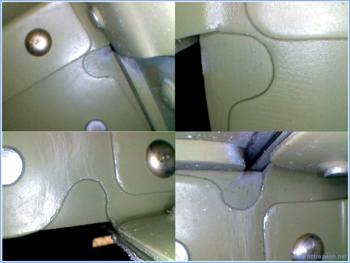 Voici les photos des 4 coins à vérifier sur le longeron avant du plan fixe horizontal.