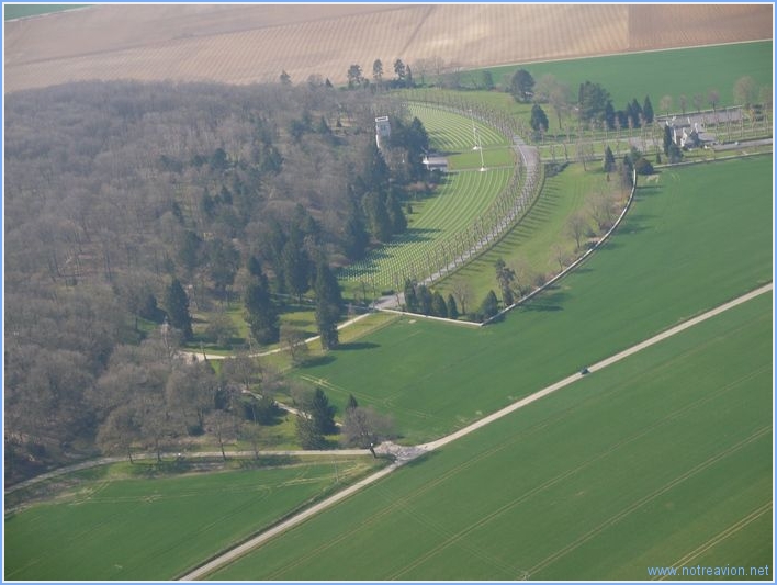 Puis nous survolons le cimetière du Bois Belleau (2289 tombes)