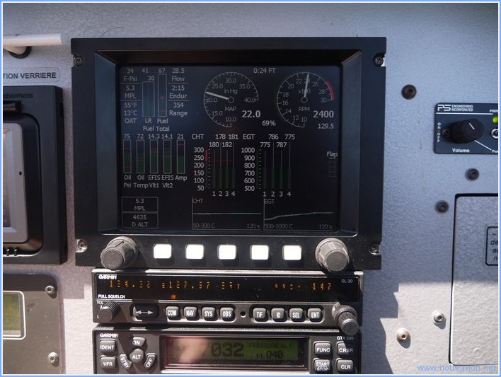 Les températures de tête de cylindres (CHT) et d'échappement (EGT) sont bien équilibrées et inférieures aux limites communément admises.