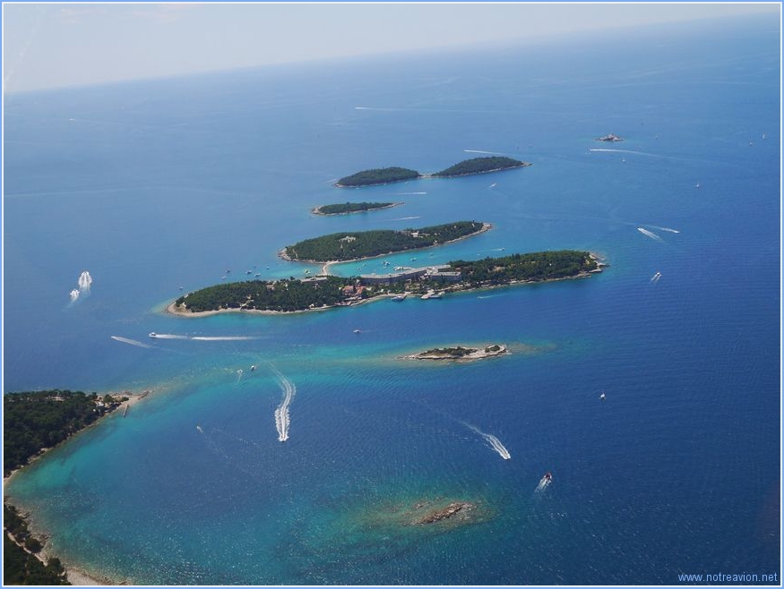 Voici juste après décollage des îles constiutées quasi uniquement de sable, des lieux d'excursion au départ de Losinj.