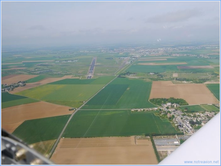Sur le trajet aller nous survolons la base aérienne de Chateaudun qui sert de base de stockage d'un nombre impressionnant d'avion de l'armée de l'air. (c'est assez peu visible sur la photo).