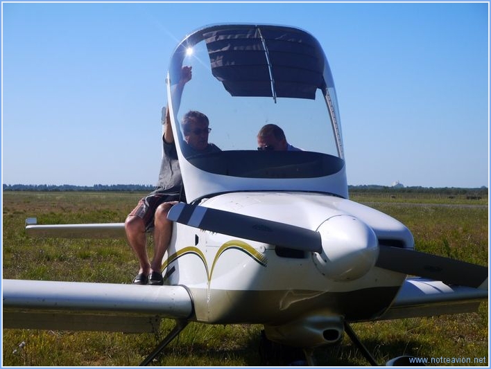 Après une nuit chez Alain et Agnès nous nous remettons en route. A l'aérodrome cela commence par un petit amphi cabine pour Alain.