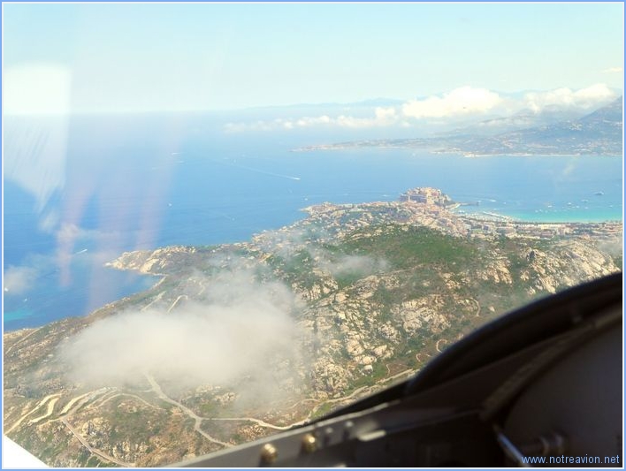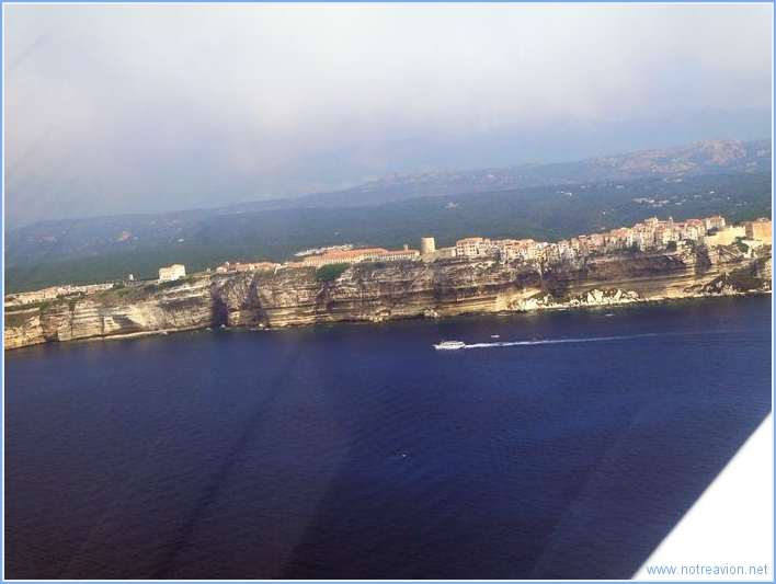 Quelques nuages bas nous obligent à diminuer notre altitude pour passer Bonifacio et ses célèbres falaises.