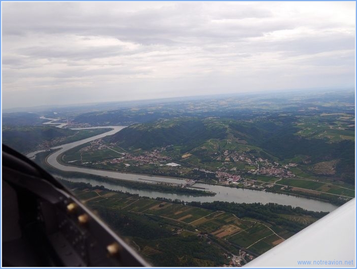 Pour éviter la centrale nucléaire de Saint-Alban, je décide de passer par l'ouest sur les contreforts de mont Pilat. Au passage vers la vallée de Saint-Chamond, nous subissons de violentes turbulences à plusieurs reprises et nous décidons de poursuivre le long du Rhône et de la Saône plus longtemps que prévu. Ce n'est qu'à la hauteur de Villefranche sur Saône que nous infléchissons la trajectoire vers l'ouest pour rejoindre Nangis et terminer notre périple corse.