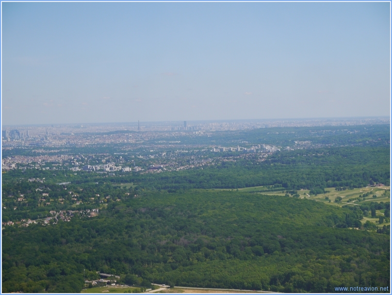 La semaine dernière, dès que les déplacements on été possibles j'ai pu faire, en retard, la révision semestrielle de l'avion. J'ai ensuite pu faire deux petits vols de reprise pour avoir à nouveau l'expérience récente au niveau des décollages et atterrissage. Aunjourd'hui, nous avons décidé de faire un petit tour de Paris, ce qui permet de rester facilement dans les limites autorisées (100 km à vol d'oiseau du domicile). Noux partons vers l'ouest, en passant Melun puis l'ancien terrain de Brétigny. Nous faisons un détour pour éviter la concentration de terrains à l'ouest de Paris (Toussus, Chavenay, Beynes, Saint-Cyr). Nous passons à coté de l'Abbaye des Vaux de Cernay (https://www.abbayedecernay.com/) Nous bifurquons ensuite vers l'est pour passer au sud de Pontoise et de Persan-Beaumont. C'est là que nous sommes le plus près de Paris. Si, si on voit la tour Eiffel sur la photo. Nous passons au sud de l'hippodrome et du chateau de Chantilly. (https://domainedechantilly.com/fr/) Puis à coté du Parc Astérix (les parkings sont bien vides ! ) )Ensuite c'est au tour de la Mer de Sable. Nous repartons plein sud pour rentrer sur Nangis en laissant Le Plessis-Belleville et Meaux sur notre droite avant de survoler Coulommiers. Et nous sommes bien restés à moins de 100km de notre domicile.
