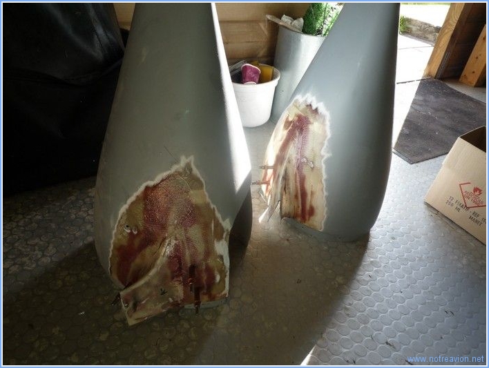 Après avoir démonté les carénages de roue lors de mon dernier passage au hangar, j'ai commencé la réparation. Tout d'abord il a fallu poncer autour des parties fissurées. J'ai ensuite recollé les pièces avec pour le moment une couche de fibre de verre. J'en rajouterai après séchage de cette première couche. Je le suis également rendu compte que du coté intérieur des carénages de raccordement j'avais oublié de faire correctement des congés en résine ceci ayant pour conséquence des collages moin solide. J'ai remédié à cela en ajoutant également une couche de fibre de verre. Temps de travail sur le sous-ensemble Aujourd'hui : 4h (Total : 131h) |