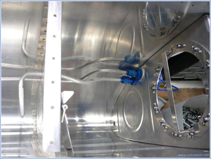 Aujourd'hui j'ai fait trois heures de petits boulots, en commençant par le perçage de l'écrou de fixation de la crépine du réservoir droit. Cet écrou doit être freiné après serrage, il faut donc percer le passage du fil à freiner. Ensuite perçage des fixations pour les purges, les trous sur le renfort sont déjà fraisés. Perçage des fixations des bouchons de réservoirs, ces perçages sont ensuite embrévés et le support de bouchon fraisé. A noter que je monte des bouchons dit "Deluxe", la finition est plus jolie et ils ferment à clef. La suite a consisté à installer le jaugeur du réservoir gauche sur le fond du réservoir. Comme le fond n'est pas très épais j'ai utilisé le couvercle normalement prévu pour la trappe d'inspection pour fabriquer un renfort qui sera posé à l'intérieur du réservoir. Sur la photo on voit le montage depuis l'intérieur, il ne reste plus qu'à monter les écrous prisonniers. Toutes les pièces qui recevront du mastic lors du montage final doivent être poncées. Et pour finir un peu de plomberie, avec la fabrication de le mise à l'air libre et de la tuyauterie de retour. Temps de travail sur le sous-ensemble Aujourd'hui : 3h (Total : 36h) |