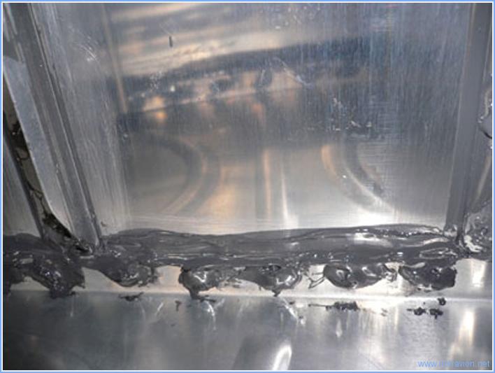 La journée a été en grande partie consacrée au masticage des nervures du réservoir droit. Tous les rivets doivent être recouverts d'un plot de mastic et les jonctions entre les nervures et la peau du réservoir doit également être pourvue d'un joint. Comme cela se fait avec le réservoir monté, la visibilité n'est pas optimale et un faire un travail propre un défi. Voici ce que cela donne vu de près. J'ai également eu le temps de riveter la nervure intérieure du réservoir gauche. Sur la photo on distingue à travers la trappe de visite les deux pièces métalliques qui empêchent la crépine mobile de rester coincée. Temps de travail sur le sous-ensemble Aujourd'hui : 3h (Total : 66h) |