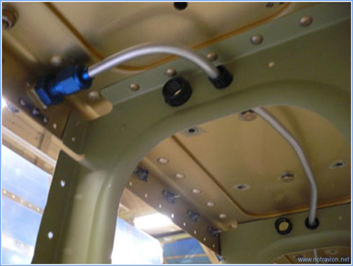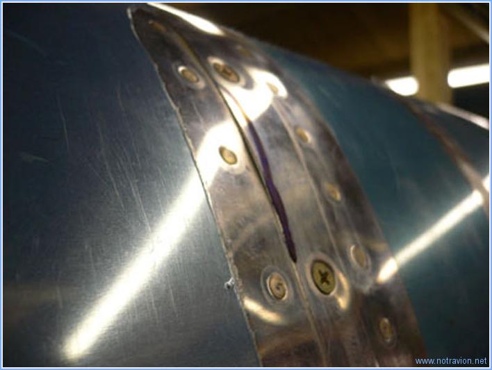 Une journée passée à l'atelier, et l'avancement se voit. Tout d'abord Sabine s'est transformée en riveteuse pour la pose des rivets de fixation des nervures de bords d'attaque sur le longeron. Le travail est assez délicat, il y a plusieurs endroit sans visibilité. Certains rivets trop délicats à poser ont été remplacés par des rivets pop (cette possibilité est autorisée par Vans). Voici une des nervures avec trois rivets pop. Puis j'ai installé les réservoirs. Ils ont été montés et démontés plusieurs fois pour des ajustements mineurs, dans l'ensemble ils sont bien en place. Ils ne sont fixés que provisoiremnt car j'attend un temps plus clément pour peindre les parties exposées (parois arrières et latérale). Lorsque les réservoirs seront à nouveau démontés, il faudra arranger le petit "ballonnement" visible sur la photo. Pour cela, j'enlèverais le rivet sur le bord d'attaque pour mettre une petite cale ce qui permettra se rattrapper le petit écart. Sur le réservoir gauche j'ai également un peu de ponçage à faire pour augmenter très légèrement le jeu entre le bord d'attaque et le réservoir. Puis j'ai installé la conduite du tube pitot, elle est un peu sinueuse pour ne pas passer au dessus des boulons de fixation du réservoir. Et pour finir, mise en place des peaux d'extrados. Temps de travail sur le sous-ensemble Aujourd'hui : 7h (Total : 10h) |