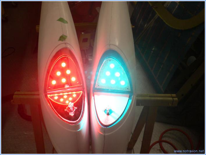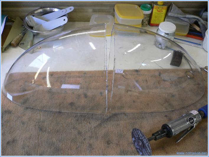 Après quelques jours sans passer par l'atelier, suite du travail sur l'installation des feux de navigation et strobes. Cela commence par le perçage du saumon pour les fixations et le passage des éléments. Pas de difficultés particulières, voici ce que cela donne avec les protections enlevées sur le saumon à gauche. Après avoir un peu bataillé avec l'alimentation 12V achetée sur Ebay (le propriétaire précédent avait ajouté un relais de clignotement), voici les feux de nav en fonctionnement. Cela éclaire vraiment très fort. Ensuite, découpage des verrines. C'est le premier découpage de plexiglas au cours du projet, cela s'est bien passé en utilisant un disque de découpage monté dans la meuleuse droite. Vans est assez généreux au niveau de la taille du plexi, il faudra l'ajuster à la découpe du saumon. Temps de travail sur le sous-ensemble Aujourd'hui : 2h (Total : 5h) |