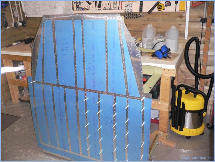 Nous avons commencé par la partie centrale et en deux heures, les trois quart des rivets sont posés.