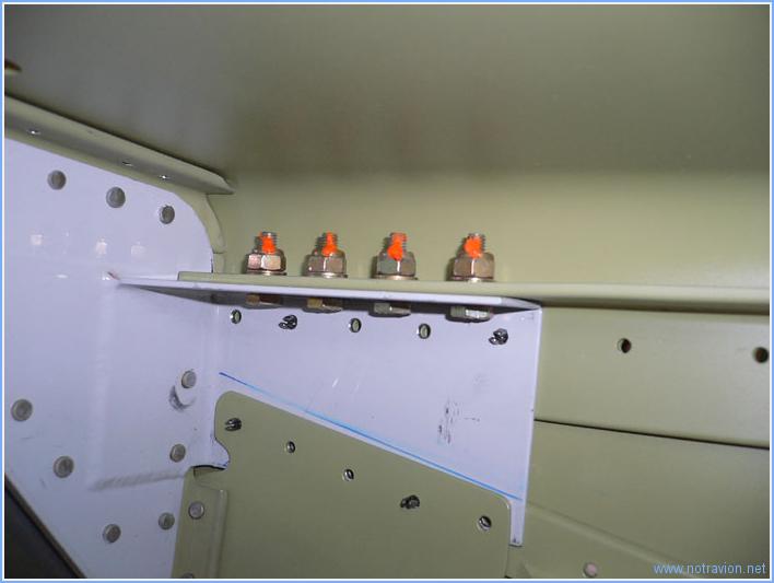 Fin de la préparation du fuselage avant pour le rivetage. La cloison pare-feu est boulonnée sur les longerons inférieurs. Puis toutes les tôles sont mises en place et la taille des rivets reportées près de perçages pour éviter d'avoir à consulter le plan trop souvent. Le rivetage doit commencer lundi prochain. Temps de travail sur le sous-ensemble Aujourd'hui : 3h (Total : 61h) |