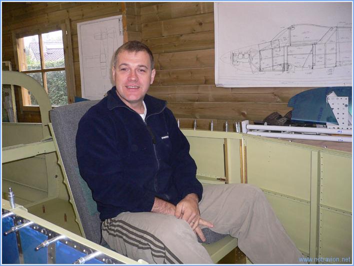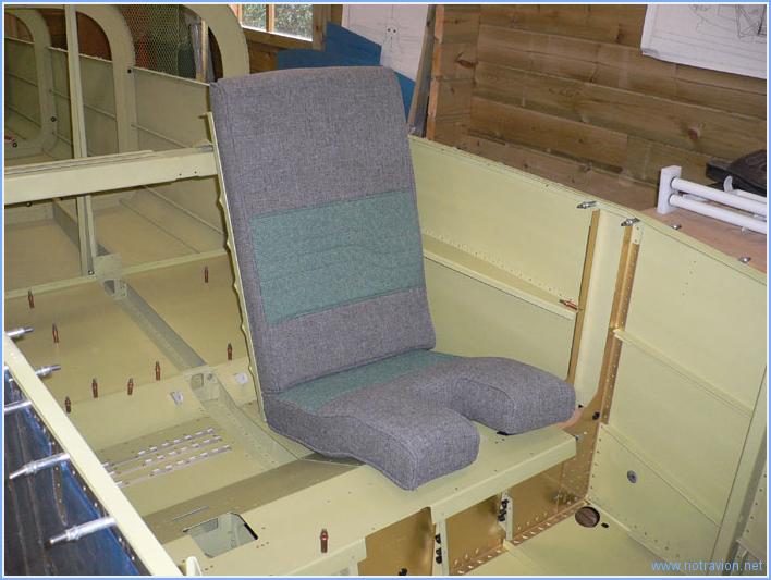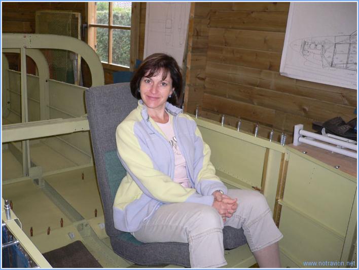 La journée a commencé par la mise à niveau des tréteaux, le fuselage est maintenant à 50cm du sol, cela permet de travailler en se penchant légèrement,de monter à bord et de se glisser dessous en cas de nécessité. J'ai ensuite installé le siège de gauche avec son garnissage. Sabine a eu le privilège du premier essai J'ai ensuite testé cela, nous avons naturellement fait des bruits d'avion pour le fun. Ensuite il s'agit de mettre en place une tôle de maintien à l'arrière. Cette pièce doit être serrée sur les longerons avec des serre-joints, après avoir vérifié l'absence de vrillage du fuselage. En centrant la pièce, le fuselage est strictement exempt de vrillage depuis la cloison pare-feu jusqu'à l'arrière. Le perçage est remis à plus tard, je n'ai pas eu le temps de bien regardé les plans. Pour nous amuser, nous avons installé les tôles supérieures. Tout cela ressemble de plus en plus à un avion. Temps de travail sur le sous-ensemble Aujourd'hui : 2h (Total : 2h) |