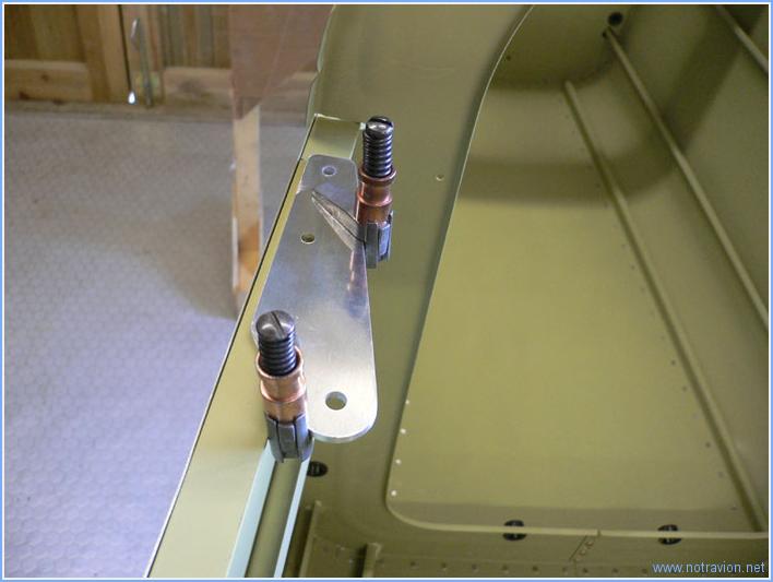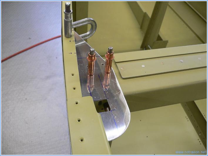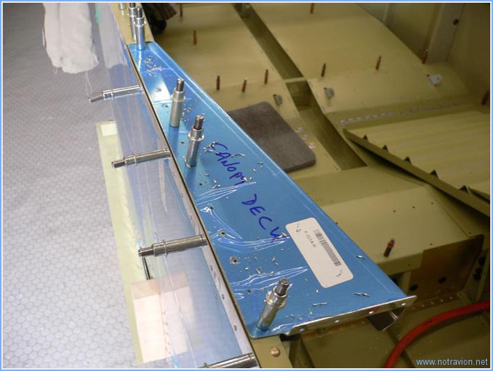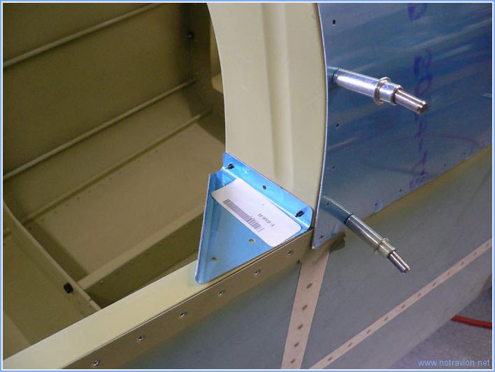 La journée est consacrée à la mise en place sur le longeron supérieur du fuselage des goussets et autres accessoires. Les goussets servent à rigidifier la liaison entre le longeron et les cadres. En partant depuis l'avant de l'avion, voici le gousset mis en place sur la cloison pare-feu. Ensuite la pièce qui termine le longeron au niveau du cadre supérieur. Puis la liaison au niveau du cadre des sièges. Cette pièce nécessite un peu plus de travail avec le perçage carré au centre. Ce perçage est destiné à recevoir le crochet de verrouillage de la verrière. Les deux cadres suivants sont fixés par ces petits goussets. Pour que leur positionnement soit le plus précis possible, j'ai mis en place la peau supérieure entre les deux cadres. Et enfin pour terminer, mise en place du support de fixation du câble de maintien du harnais d'épaule. Temps de travail sur le sous-ensemble Aujourd'hui : 3h (Total : 8h) |