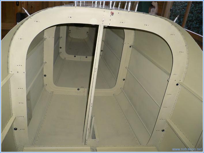 Today I worked on the bagage bulkhead, the picture shows all : the nuplates all around and on the center rib are drilled and riveted and the center rib is riveted. For the center rib, Sabine bucked the four rivets under the fuselage belly. Here is a picture of my little repair on the center rib. I also installed teh wearblock that will protect the shoulder harness cable from shaffing while going through the bagage bulkhead. Working time on this subpart Today : 4h (Total : 25h) |