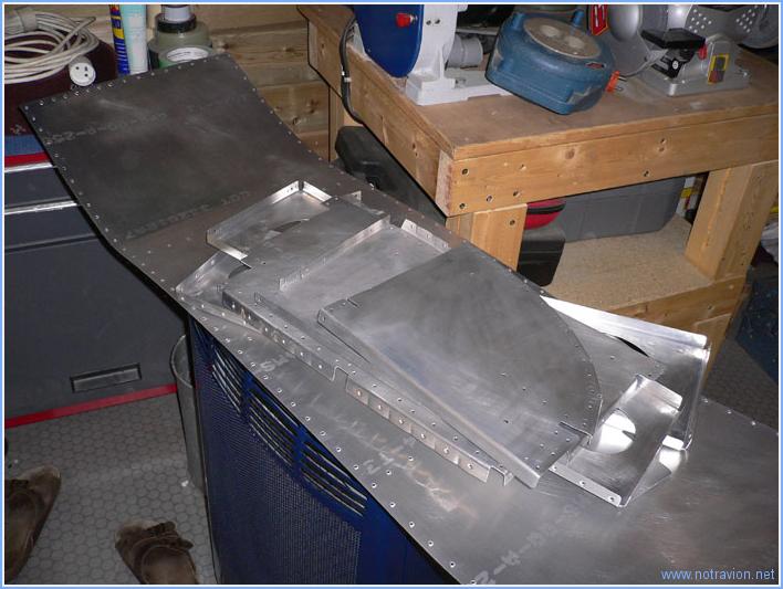La journée commence par le ponçage des pièces restantes. Enf ait tout le fuselage supérieur avant : tableau de bord et peau. Ensuite j'ai installé les deux prises d'air. Elles vont alimenter en air frais les aéreteurs du tableau de bord. Elles seront fixées avec du Proseal (le joint pour les réservoirs) et pour les maintenir en place pendant le séchages quelques rivets sont installés. Pour éviter d'écraser le plastique, j'ai fabriqué une pièce en aluminium avec une chute. Vans suggère de ne fabriquer que des petites cales, la pièce entière n'a pas été très longue à découper et le résultat me plait bien.. Temps de travail sur le sous-ensemble Aujourd'hui : 2h (Total : 111h) |