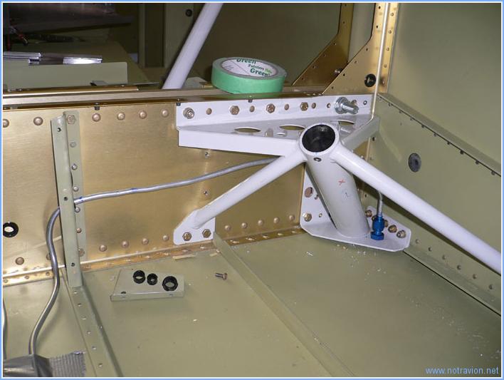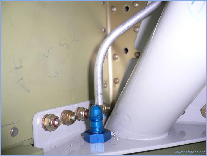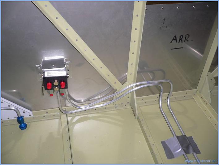Suite de la plomberie, je commence par l'ajustement des deux tuyauteries reliant la vanne de frein de parc au raccord de sortie du fuselage près des supports de train. Voici le coté vers la vanne de frein. Et voici la vue vers l'arrière avec le support de train à droite et le raccord bleu tout à droite. Sur le plancher, un des supports que la tuyauterie doit traverser, cela va poser quelques problèmes. Voici le raccord de sortie du fuselage. Il reste l'épanoui à faire, mais avant cela il faut enfiler sur la tuyauterie un écrou et une olive. Une fois cette opération faite, l'ensemble ne passera plus par les perçages prévu dans les supports. Pour l'instant, la seule solution est de faire l'épanoui une fois que tout est monté dans la cabine. De toute façon ce n'est pas pour tout de suite, donc on va attendre et réfléchir. Temps de travail sur le sous-ensemble Aujourd'hui : 2h (Total : 123h) |