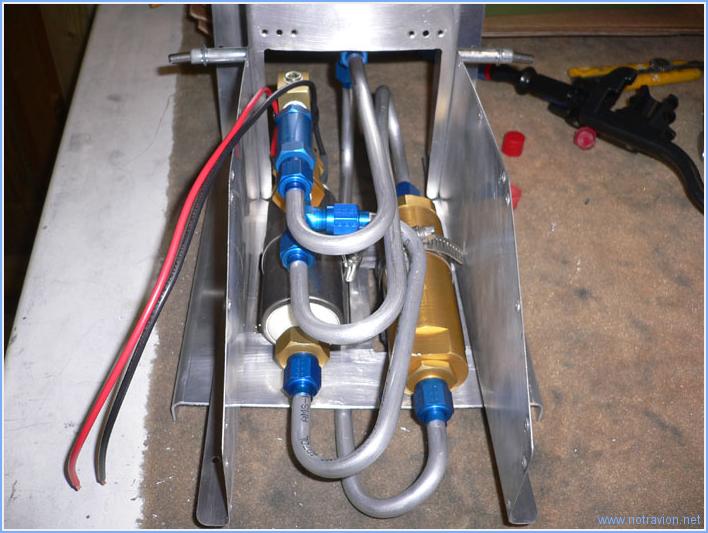 Comme j'ai trouvé une cintreuse adaptée, je poursuis la plomberie sur la pompe carburant. Il y a trois conduites à fabriquer, cela ne se passe pas trop mal, j'en ai eu qu'une seule à refaire. Tous les épanouis sont faits, sans oublier ni olive, ni écrou. Puis je fabrique le tuyauterie qui va de la pompe vers la cloison pare-feu. Elle n'est pas terminée du coté cloison parefeu car je ne sais pas encore exactement comment elle sera positionnée à cet endroit. Temps de travail sur le sous-ensemble Aujourd'hui : 3h (Total : 127h) |