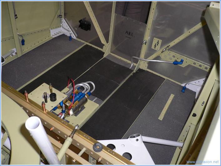 Only one hour in the workshop. The fuel and brake lines have to be isolated from the cabin floor. I have not decided how to do this, but before finding an answer, I decide to install soundproofing floor mats from Spruce. I only had to cut the mat delivered by Spruce. The mat is a vinyl mat with foam backing. The picture shows the two different colored sides as I didn't know which side should be up. Working time on this subpart Today : 1h (Total : 145h) |