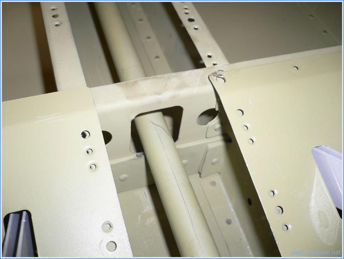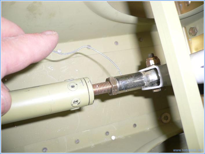En cabine, j'ai repris le réglage de la position du manche. Il suffisait de faire la correction dans le bon sens, c'est à dire allonger la petite bielle de commande. Il n'est pas possible de l'allonger de trop, car les tiges filetées doivent être engagées de façon suffisante dans la rotule. Pour vérifier cela, il suffit d'insérer un petit fil de fer dans un perçage sur le coté de la rotule, si le fil de fer ne peut pas passer, la tige est vissée assez loin. Le manche est maintenant plus vertical, il n'est pas prévu qu'il le soit complètement et j'ai vérifié qu'il ne bute pas sur le tableau de bord. IJ'ai trouvé une petite interférence entre la petite bielle et le cadre des sièges. C'est un problème assez courant, il suffit de poncer un peu le bas de l'ouverture pour y remédier. Temps de travail sur le sous-ensemble Aujourd'hui : 1h (Total : 148h) |