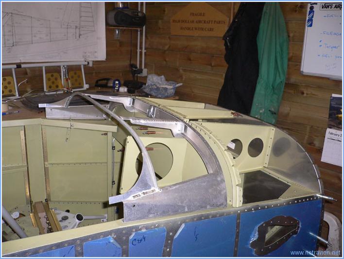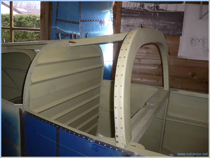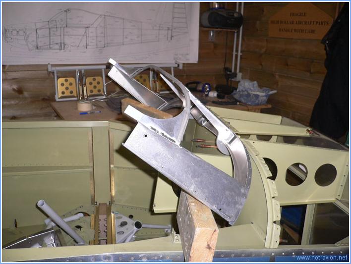 En vue des travaux de fabrication de la verrière, il faut réinstaller un certain nombre d'éléments sur le fuselage. Tout d'abord l'arceau principal. L'accès aux boulons n'est pas des plus facile, cela prend donc un peu de temps. Puis il faut réinstaller toute la structure qui supporte le panneau instrumental, les charnières de la verrière sont sur vette partie. Je n'ai pas pu résisté, j'ai installer la partie avant du cadre de la verrière. A première vuen, il n'y a pas d'erreur grossière, le cadre se positionne correctement. Mais il va y avoir beaucoup de travail pour arriver au bout de cette délicate partie de la construction. Voici une photo avec le cadre partiellement ouvert, cela donne une idée du fonctionnement. Temps de travail sur le sous-ensemble Aujourd'hui : 2h (Total : 2h) |