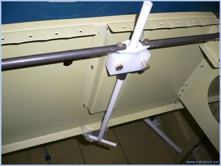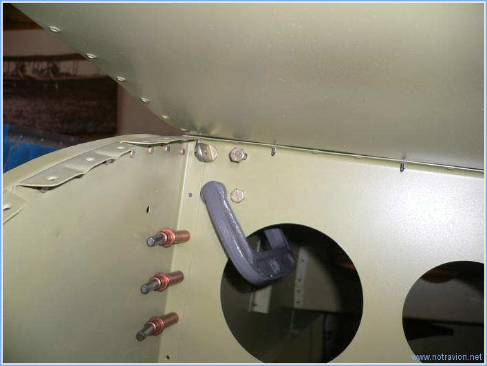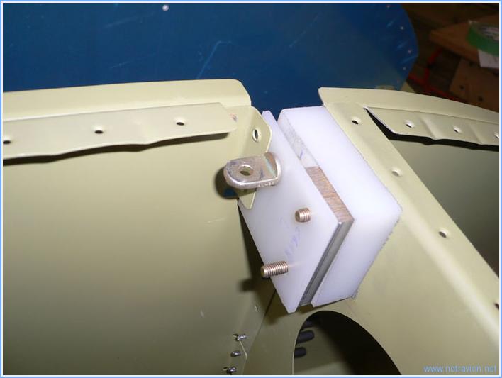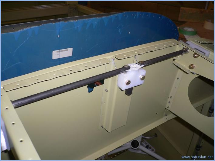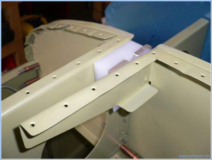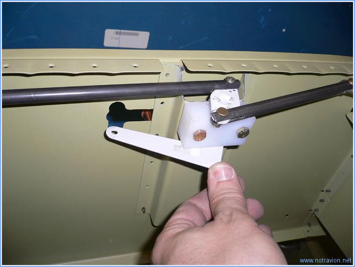Je commence par la fabrication des blocs de support des charnières avant du cadre de la verrière. Cette opération est bien décrite dans la liasse de plan et su beaucoup de site. L'ordre des opérations parait un peu bizarre, mais cela fonctionne. Voici le bloc de gauche en place avec ses deux boulons et la fiche de maintien. Voici le coté droit, après rajout de la petite nervure flottante au premier plan. Pour le perçage de cette nervure il faut remettre en place la peau supérieure avant car il n'y a pas d'autre moyen de la maintenir en place. Le perçage se fait en soulevant les extrémités de la peau et en utilisant la perceuse d'angle. La photo est prise après le premier perçage en bas à droite. Puis, mise en place du mécanisme de largage de la verrière. Il a fallu pas mal de petits ajustements pour obtenir un fonctionnement correct. Voici le mécanisme en position fermée. Pour obtenir la position ouverte, le mécanisme est entrainé en rotation. Normalement par le levier visible sur la photo sur lequel vient se fixer une poignée qui traverse le tableau de bord et permet le largage de la verrière en vol. Sauf que la verrière est alors encore fixée par les vérins de relevage, le largage me parait donc assez aléatoire.. Mon mécanisme ne sera donc pas manipulable depuis le tableau de bord. Soit j'utilise une poignée plus courte ne traversant que le tableau secondaire par l'orifice visible sur la photo. Soit je ne mets pas en place le levier et j'utilise la poignée comme sur la photo, cela permettra la rotation du mécanisme en se glissant sous le tableau de bord et permettra de démonter aisément la verrière pour l'entretien. Cette dernière méthode a pour l'instant ma préférence. Temps de travail sur le sous-ensemble Aujourd'hui : 3h (Total : 11h) |