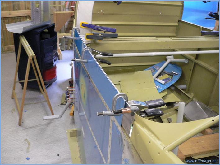 Visuellement, le travail d'aujourdhui ne semble pas avoir fait avancer la construction. C'est les montages et démontages successifs, ainsi que tous les ajustements qui ont pris beaucoup de temps. Tous d'abord il a fallu réajuster le cadre arrière et les rails latéraux. On s'aperçoit que la jonction des rails latéraux et du cadre acant nécessite quelques réglages. Après tout ces réglages, mise en place de la plaque de jonction entre le rail latéral et le cadre avant. Les perçages sur le cadre avant seront agrandis, pour l'instant je les ai laissé en petit diamètre pour permettre des petites modifications de dernière minute. Le cadde avant n'étant pas dans le prolongement du rail latéral, il faut fabriquer une petite cale triangulaire, elle n'est pas encore dans sa position définitive et sera ajustée et fixée un peu plus tard. Temps de travail sur le sous-ensemble Aujourd'hui : 4h (Total : 44h) |