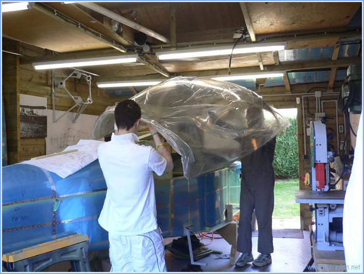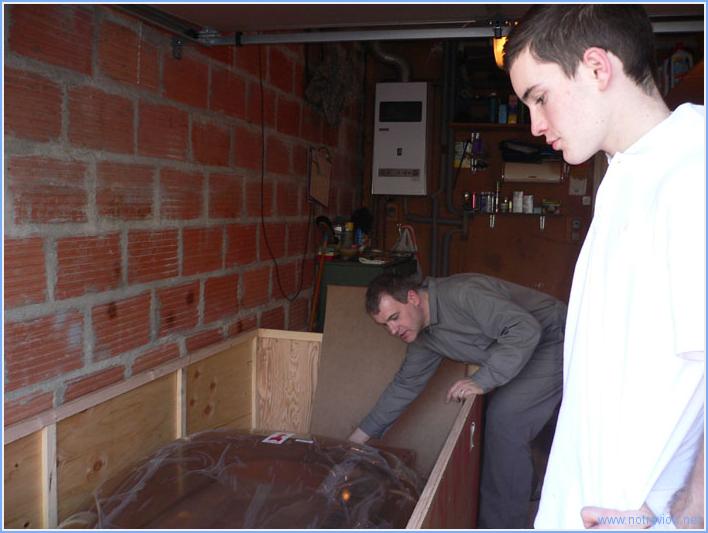 Pour fêter le passage de la millième heure de travail dans l'atelier, nous avons sorti la verrière de son stockage dans le garage de notre voisin. Antoine est venu donner un coup de main, Sabine s'est occupée du reportage photo. Notre voisin Michel surveille. Temps de travail sur le sous-ensemble Aujourd'hui : 0h (Total : 65h) |