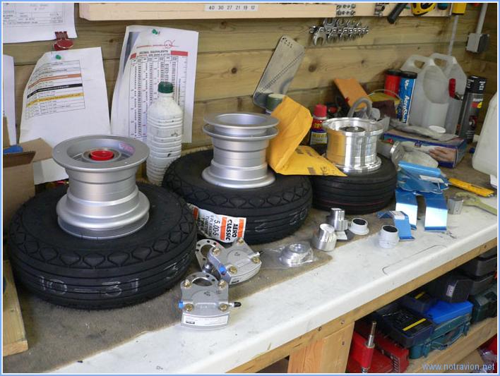 The weather being cold and rainy, it's not possible to work on the canopy or do some painting. After having worked a bit in the house, I decided to fabricate the brake lines. Two small parts have to be installed on the tubing, it's easy once the hose have been heated in hot water. Only one side is done, the other side will be done once the brakes are in the fuselage. Then I took all the wheel parts out of storage. I have some reading to do before beginning the assembly. Working time on this subpart Today : 1h (Total : 84h) |