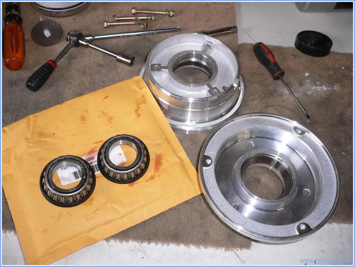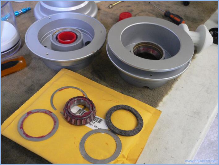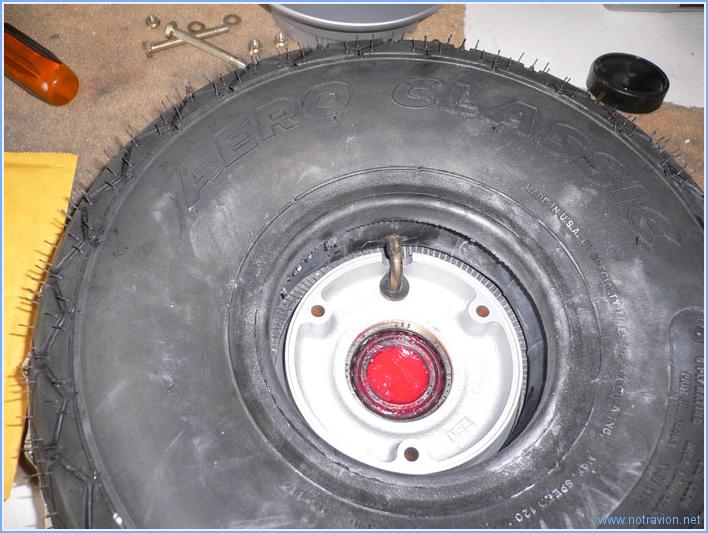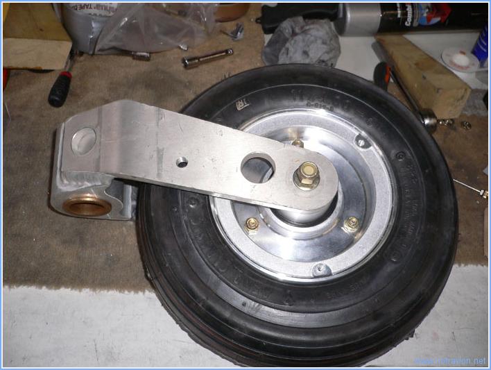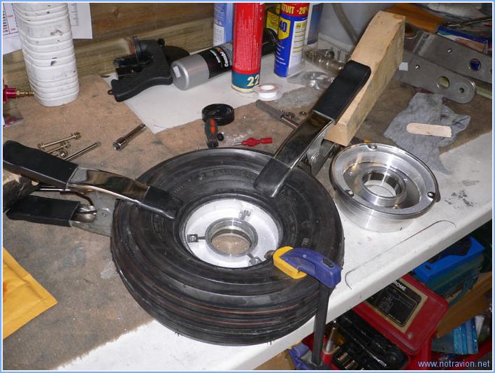 Aujourd'hui, il y a eu deux heures d'éclaircies qui ont permis de ... tondre la pelouse. Ensuite le montage des trois roues a pu commencer. Tout d'abord celles du train principal. Contrairement aux roues de voitures, les jantes sont en deux parties. Il faut d'abord les séparer et vérifier le bon graissage des deux roulements. Voici un des roulements avec ses éléments de montage. Le roulement est graissé correctement, mais il faut graisser le joint en feutre. Tout d'abord le pneu et la chambre sont enduite de talc, puis la chambre est installée dans le pneu en alignant la valve avec le point rouge. La première moitié de la jante est installée, le valve est insérée dans le passe-fil. C'est l'opération la plus difficile, le passage est étroit. La deuxième moitié de la jante est ensuite boulonnée en place. La chambre est gonflée et dégonflée plusieurs fois pour qu'elle se mette bien en place. Pour la roue avant, le principe est quasiment le même. Toutefois, les roulements ne sont pas graissés et il y a un peu moins d'espace disponible. Il y le risque de pincer la chambre lors de l'assemblage de la jante. Voici les montage utilisé, les pinces permettent d'écraser le pneu pour l'amener au niveau de la demi-jante en place. La chambre est bien écartée de la jante avant de présenter l'autre moitié. Après plusieurs gonflages et dégonflages, j'installe la fourche de support de la roue. Le boulon n'est pas encore serré car il faut mettre en place les supports du carénage. Temps de travail sur le sous-ensemble Aujourd'hui : 2h (Total : 2h) |